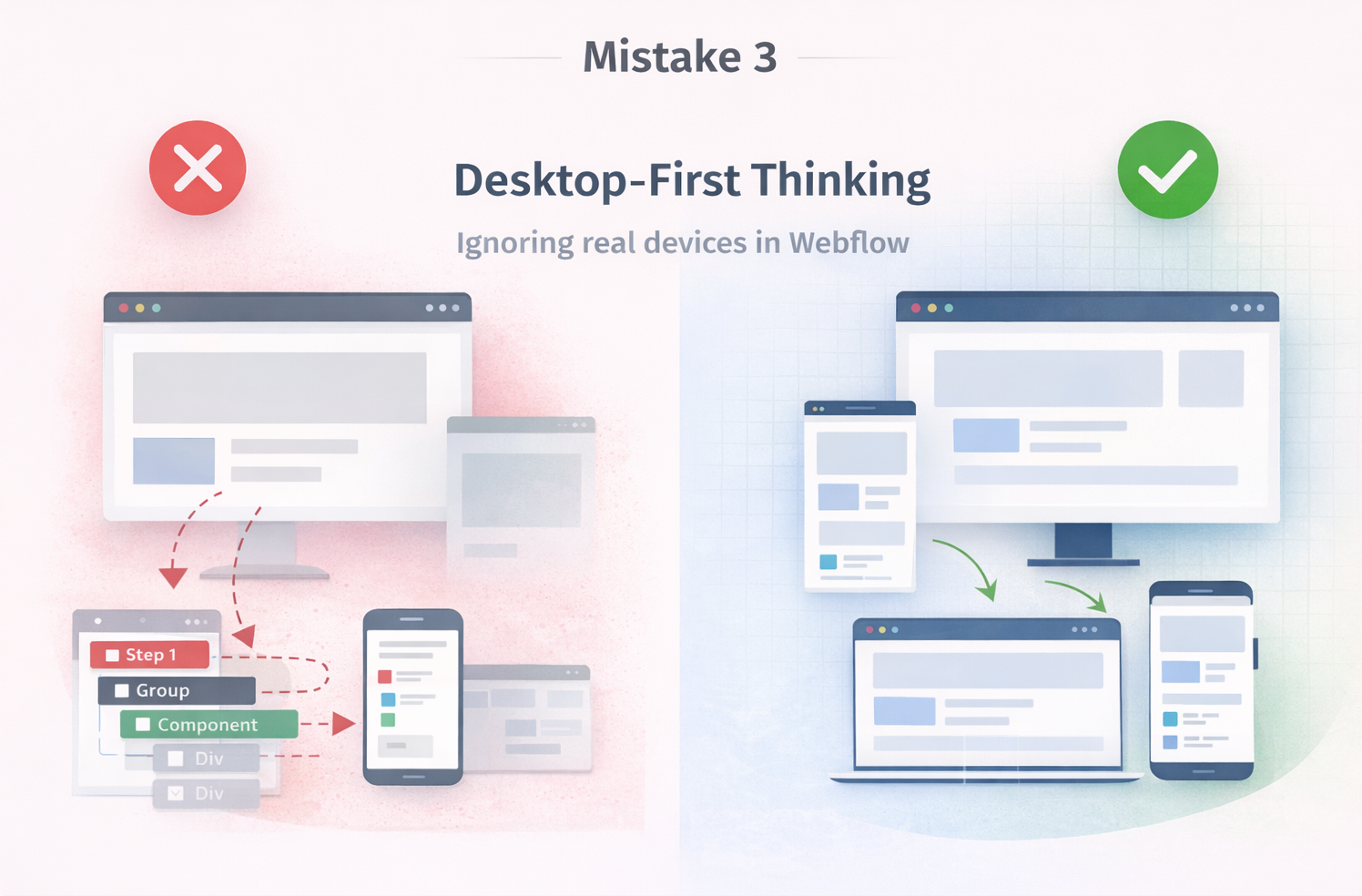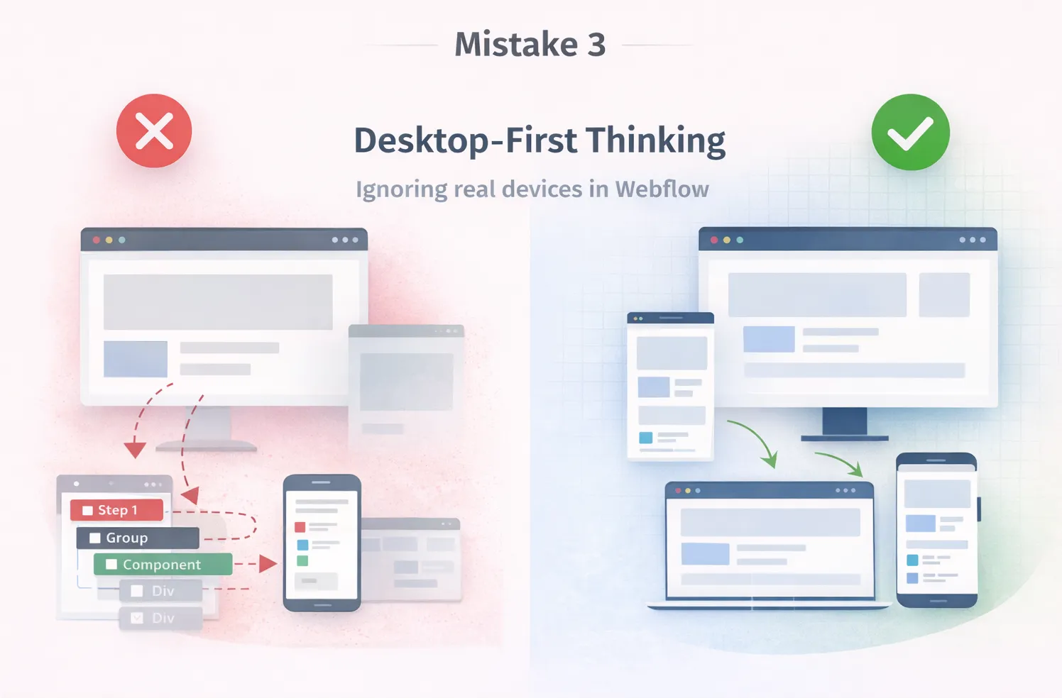 Desktop-first design creates unstable Webflow builds and delays launch timelines.