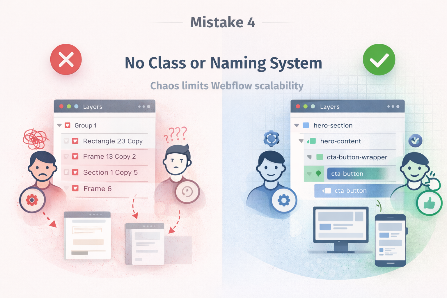 Over time, poor naming destroys scalability and limits future webflow integration possibilities.