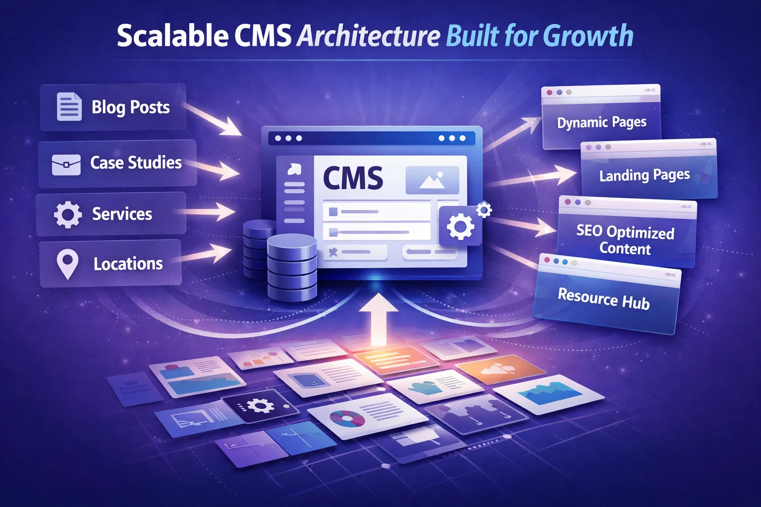 Rather than using CMS only for blogs, modern Webflow projects rely on multiple CMS collections to manage services, industries, locations, case studies, landing pages, and resources. These collections are structured intentionally to support scalability and SEO growth.