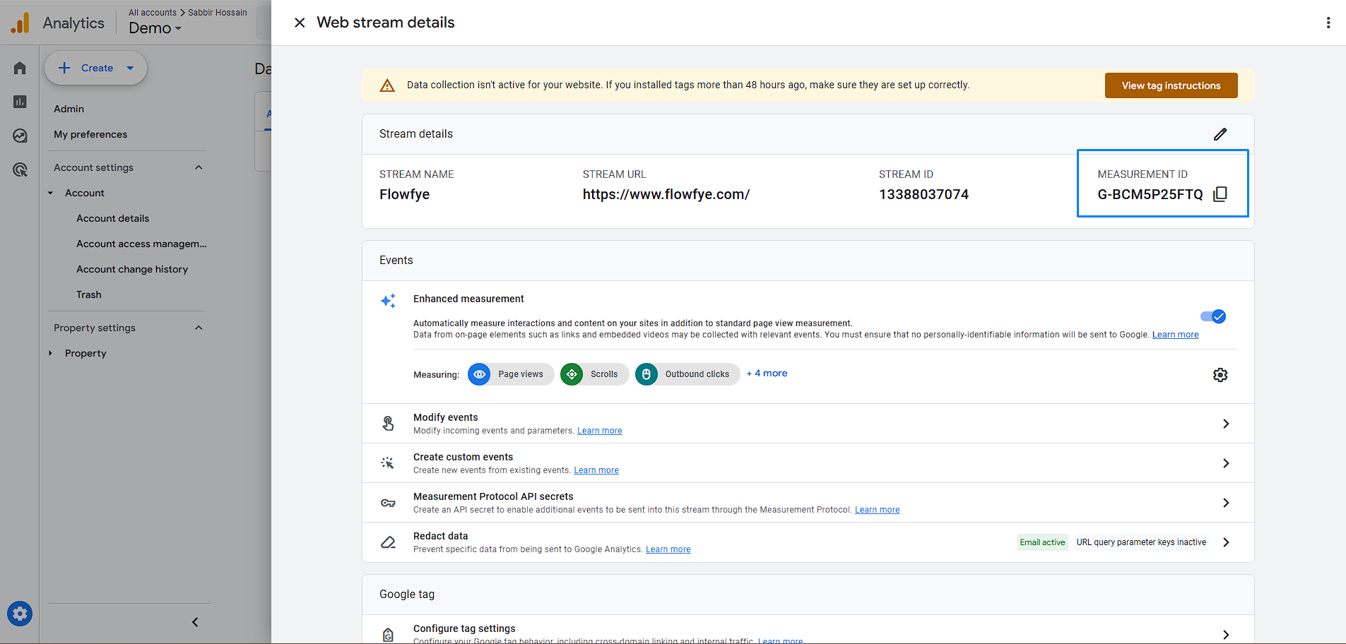 You will see a Measurement ID formatted as G-XXXXXXXXXX.