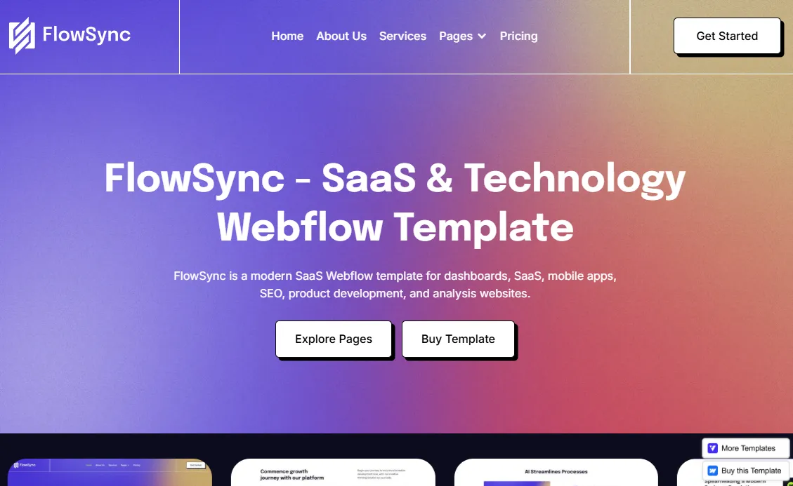 FlowSync is a modern SaaS Webflow template designed specifically for software platforms that rely on structured content, dashboards, and feature-driven storytelling. It is built to support long-term SaaS growth rather than short-term launches.