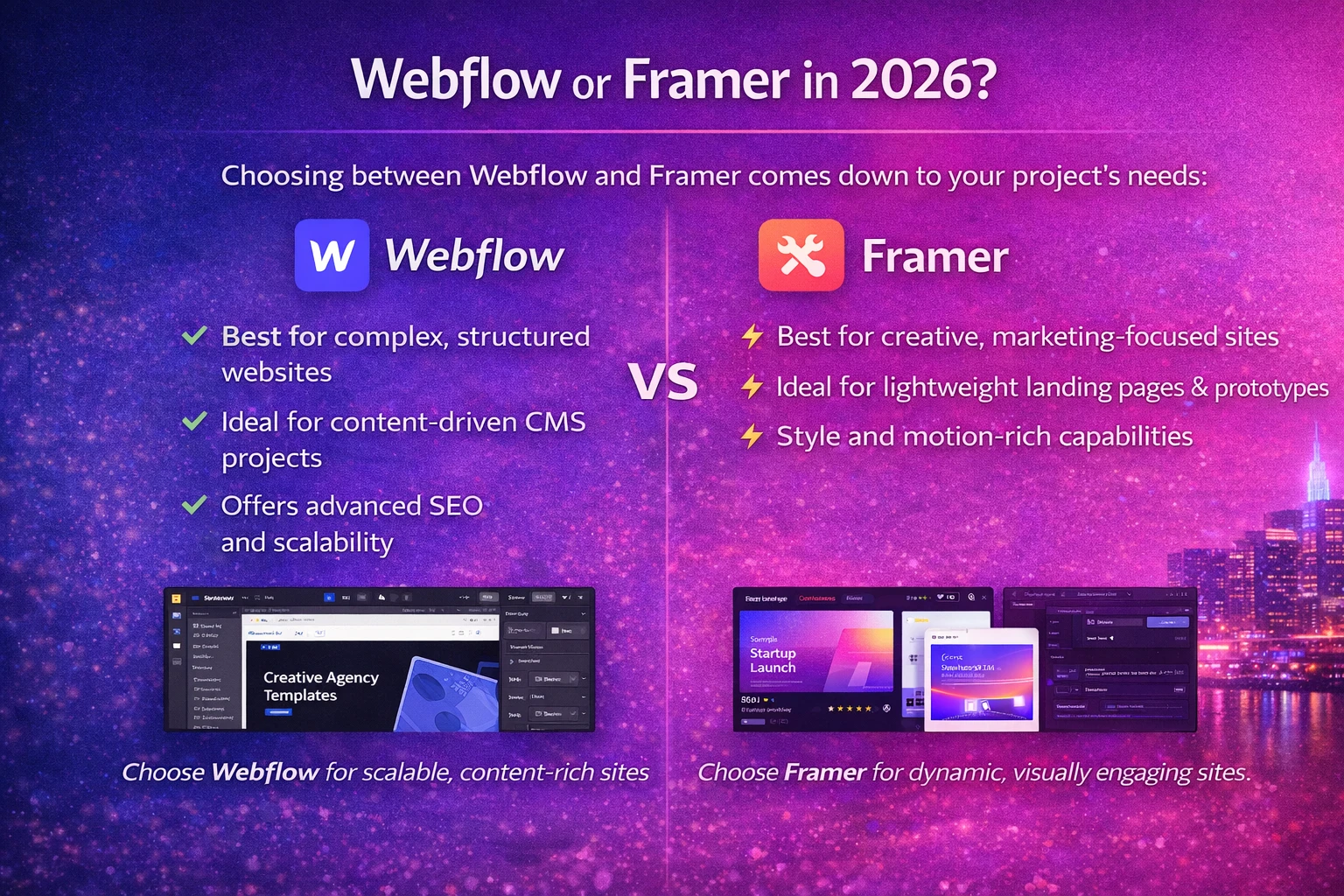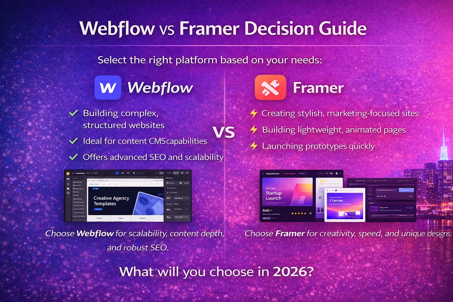 What once felt like a simple comparison between a structured builder and a design-first tool has now evolved into something far more strategic. In 2026, choosing between Webflow and Framer is not just about aesthetics or workflow preference. It is about scalability, ownership, SEO performance, content strategy, and long-term digital growth.