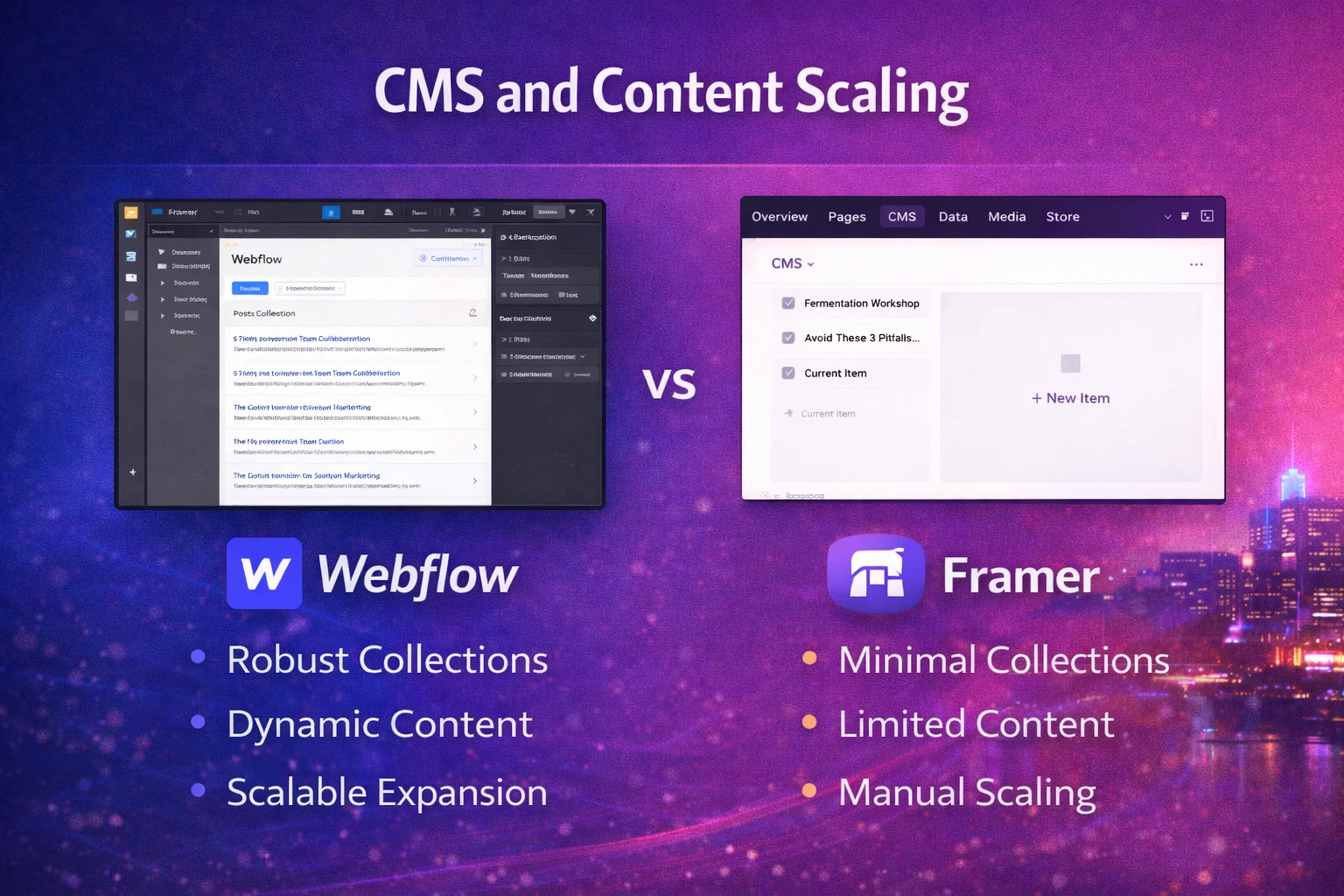 If your business depends on content marketing, blog publishing, directories, or dynamic data structures, Webflow currently provides deeper CMS capabilities.